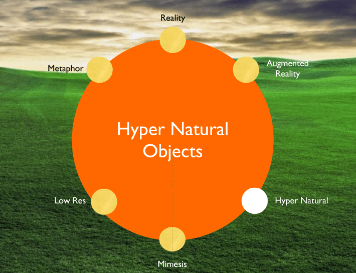 [SC]: In prima battuta, credo sia utile che tu racconti ai lettori come sei arrivato al concetto di Hyper Natural Objects, in sostanza vorrei che tu introducessi il diagramma che spiega l’evoluzione dalla mimesi all’hyper naturalità e dunque brevemente il concetto.