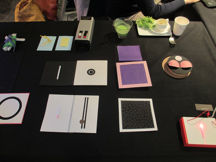 - Semplici materiali intelligenti quali l’inchiostro conduttivo, che non richiedono una conoscenza approfondita della chimica, né costose attrezzature. All’inizio di quest’anno, Jordan Bunker è stato in grado di riprodurre un metodo per fare inchiostro conduttivo che aveva letto in un documento di ricerca di due scienziati dei materiali da UIUC, nel suo hackerspace. Un paio di mesi dopo, Nick Vermeer dal NYC Resistor, anche egli sulla base di un aricolo di ricerca, ha creato un inchiostro conduttivo DIY.