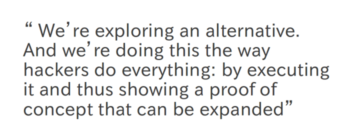 [Catarina Mota] My personal take on this is that we’re not uprooting a system and replacing it with an entirely new one. That would have devastating economic and social consequences as history has shown. We’re simply proposing and exploring an alternative. And we’re doing this the way makers/hackers do everything: by executing it and thus showing a proof of concept that can be expanded. It used to be really hard to argue that open source businesses are viable, but now we have so many examples of successful companies that we don’t need to argue anymore. All we have to do is point at these real-life examples.