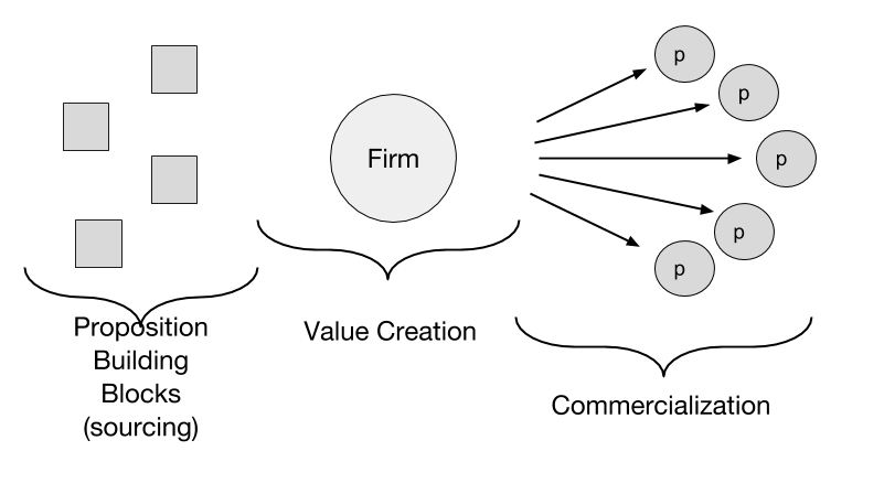How does the target change then? In the linear interpretation of business, value creation takes place within the firm, which turns blocks and primary products in complex products and services, which then submits to the market in a shareholder value maximization process.