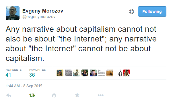 As E. Morozov recently said “any narrative about capitalism cannot not also be about “the Internet”; any narrative about “the Internet” cannot not be about capitalism.