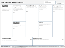 The Platform Design Canvas is a fork of the Business Model Canvas which aims to facilitate the design of business, but also products or organizations, looking at them as platforms for value creation. It’s nothing more (or less) than a tool for platform design.